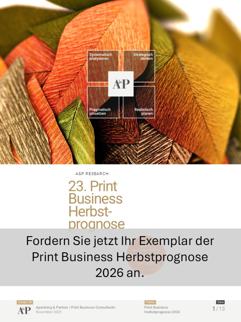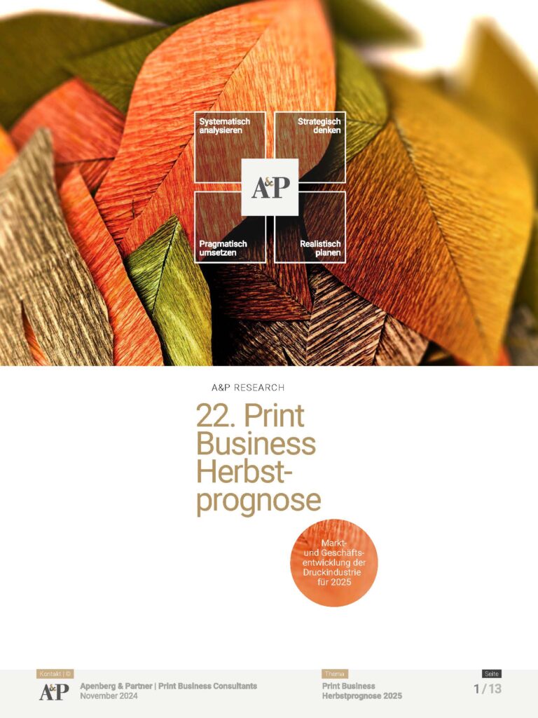 Die Herbstbefragung von Apenberg+Partner gehört in der Branche zu den bedeutendsten Top-Management-Befragungen für die Druckindustrie, Printmedien, Verlage und